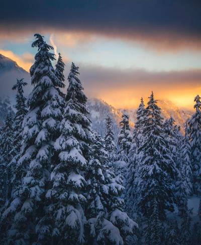 December sunrise in Mt Baker Forest, Washington, USA OC