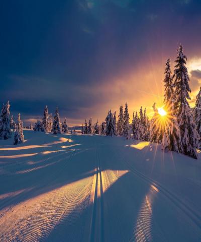 Skiing into the beautiful sunrise over Gudbrandsdalen, Norway (photo @jappern)