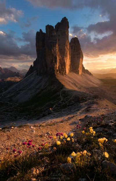 Sometimes you get really lucky with sunset light, Tre Cime di Lavaredo, Italy OC
